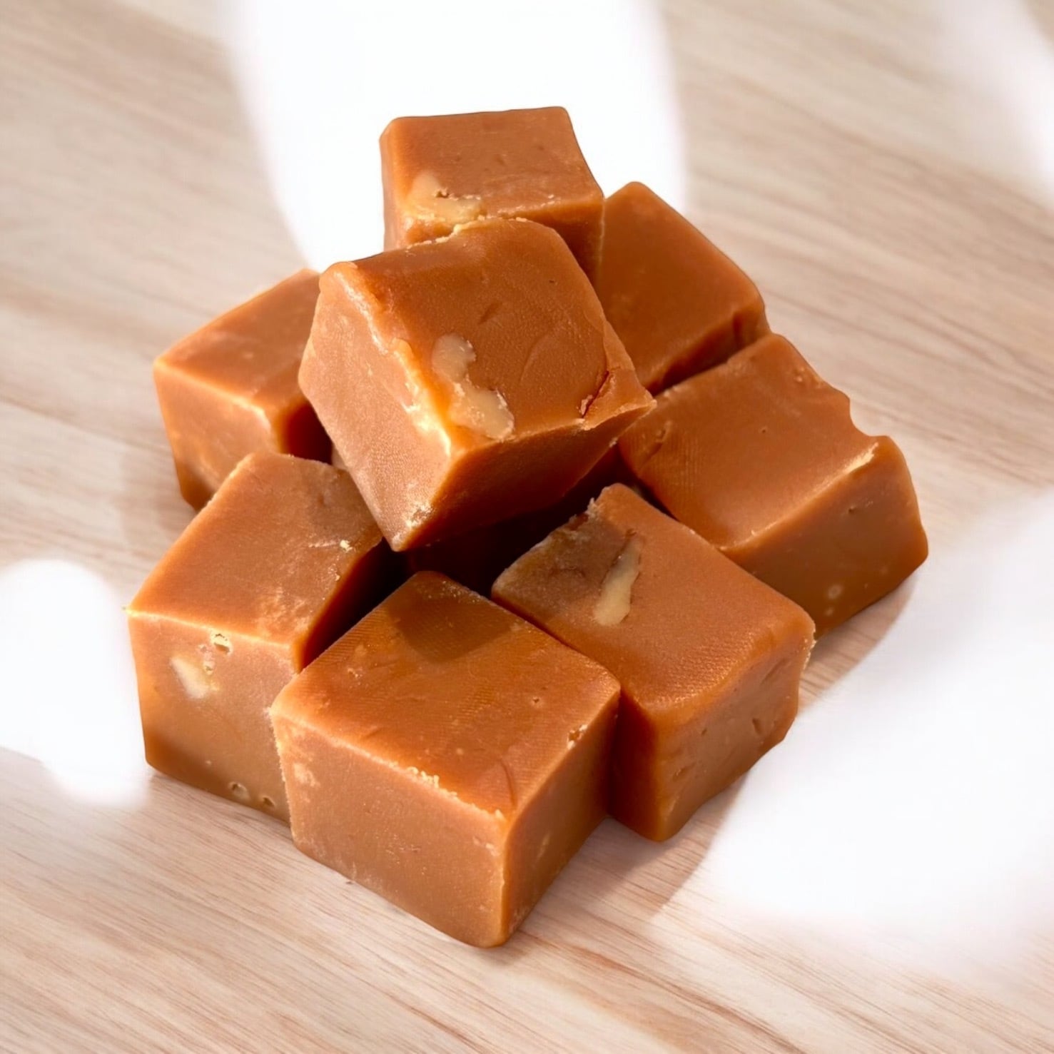 メイプルシロップがけのクルミ入りファッジ